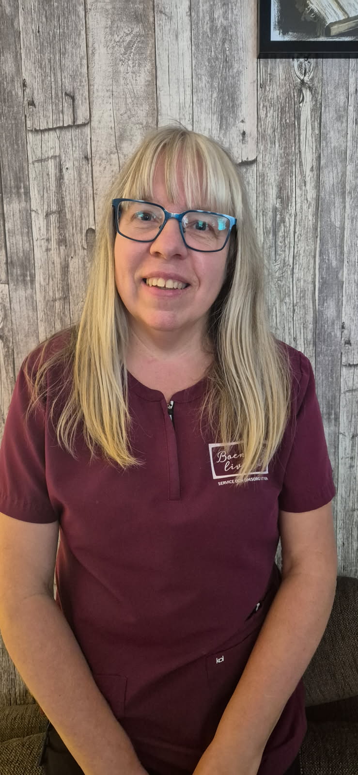 På fritiden tycker jag bl a om att umgås med familj och vänner, vistas ute i skog och natur, läsa, skriva, måla och promenera. I April 2025 började jag som vikarie hos Boende Livet Ut och har nu en tjänst. Jag trivs verkligen med mitt jobb hos Boende Livet Ut. Det känns bra och fint i hjärtat att få finnas tillhands för människor som är i behov av stöd och hjälp på olika sätt i sin vardag.
